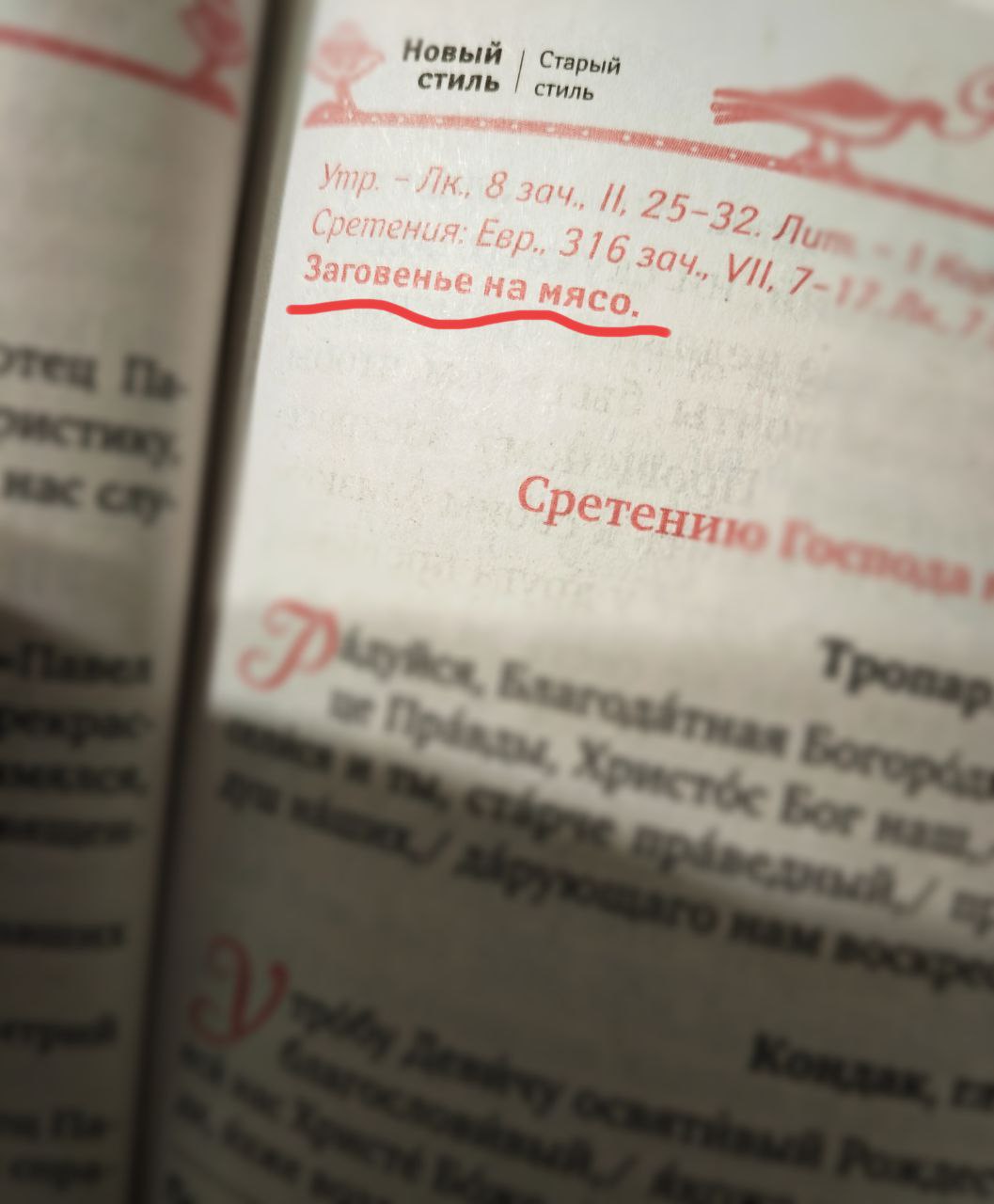 Неделя мясопу́стная, о Страшном Суде. Глас 3-й. Сре́тение Господа Бога и Спаса нашего Иисуса Христа. Заговенье на мясо.