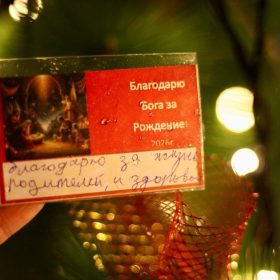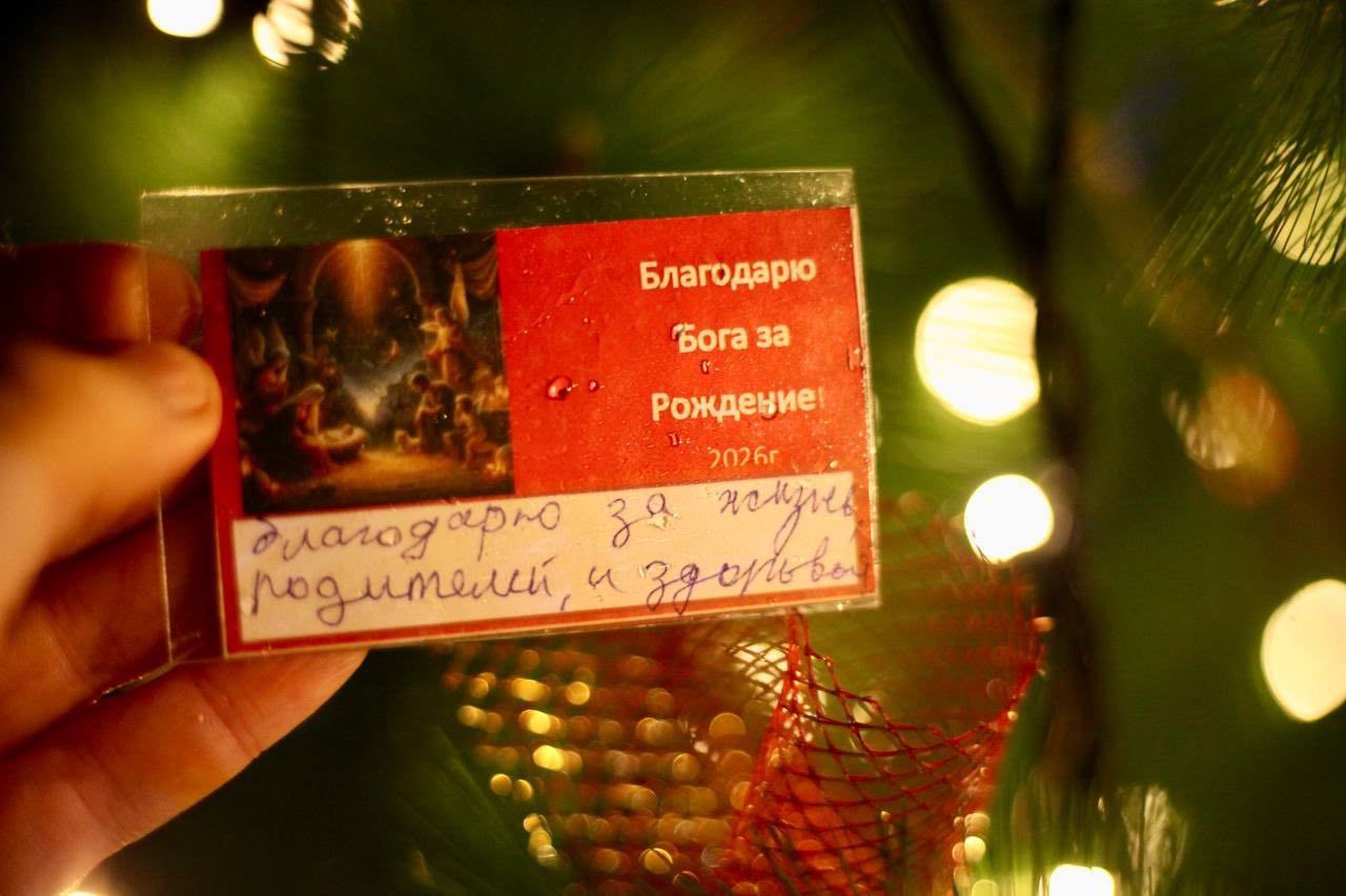 Во время Рождественской ярмарки, гости, прихожане, писали свои благодарности Богу за рождение и каждый мог поблагодарить открыто Родившегося Богомладенца за то, что имеет. И конечно, больше всего было написанных слов за жизнь, здоровье, семью. Слава Богу за всё, дорогие! Слава Богу!
