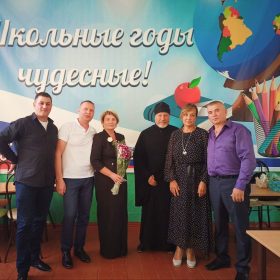 На фотографии:наш батюшка-протоиерей Павел Швалёв поздравил преподавателей нашей местной школы с Днём учителя.