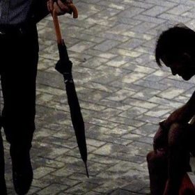 Мимо прошёл священник, прошёл левит и только лишь сжалился самарянин, подойдя, перевязал ему раны, возлил масло, вино и посадив его на своего осла, привёз его в гостиницу и позаботился о нём. А в гостинице оставил два динария, чтобы о бедном человеке позаботились дальше.