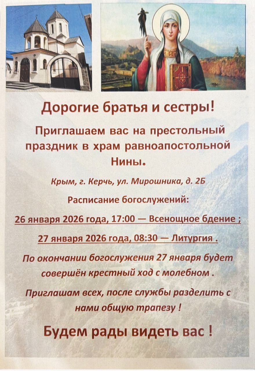 В преддверии Дня памяти святой равноапостольной Нины-просветительницы Грузии, приглашаем на престольный праздник храма.